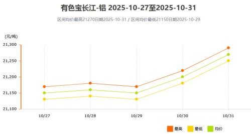 中国宏桥集团2025年10月31日产品报价(单位: 元/吨)品种名称今日价格昨日价格涨跌A00铝2141021330+80