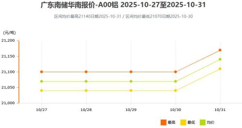 中国宏桥集团2025年10月31日产品报价(单位: 元/吨)品种名称今日价格昨日价格涨跌A00铝2141021330+80