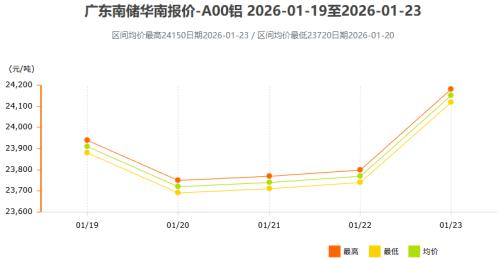 报价时间: 2026-01-23单位: 元/吨产品名称规格合同交货地点中铝企业*华东市场华南市场西南市场中原市场铝锭AL99.70现货24110241502410024030产品名称合同交货地点山东地区河南地区山西地区贵...