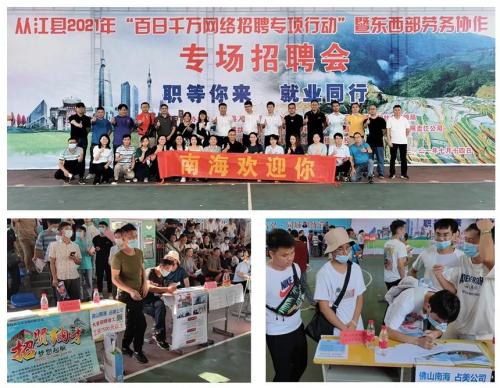 早在今年7月份,占美作为南海区优质企业代表(共27家企业)受邀参加了南海区人社局组织的赴贵州从江县、榕江县、凯里市三地东西部劳务协作专场招聘会。回顾招聘会现场,人头攒动,前来占美展位了解的应聘者更是络绎不绝,我司招聘人员有条不紊地接待前来咨询的应聘者,并详细介绍企业概况、用人需求、工资待遇和员工福利等大家关注的问题。现场场面火爆,交流氛围浓厚。