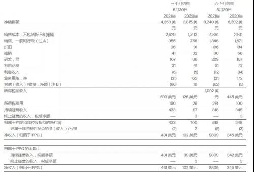 Michael H.McGarry提到,“PPG将继续积极应对各种供应链中断,预计第三季度的总投入和物流成本将比第二季度连续上升。我们继续优先考虑进一步提高销售价格,我们预计将在2021年底前完全抵消原材料成本的上涨。总体经济需求增长仍然非常广泛和强劲,随着供应条件的正常化,我们预计今年晚些时候和明年的销售将强劲增长,这得益于我们的技术优势产品、我们多样化的地理和最终用途市场参与,以及我们的航空航天业务的持续复苏。同时,我们将继续积极地管理我们的成本结构的各个方面。”