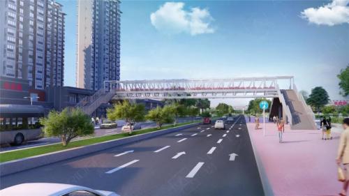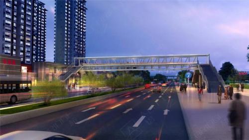 人行天桥建成后将成为阳光未来城与大旺轻轨站、育慧学校之间的重要的、安全的人行通道。