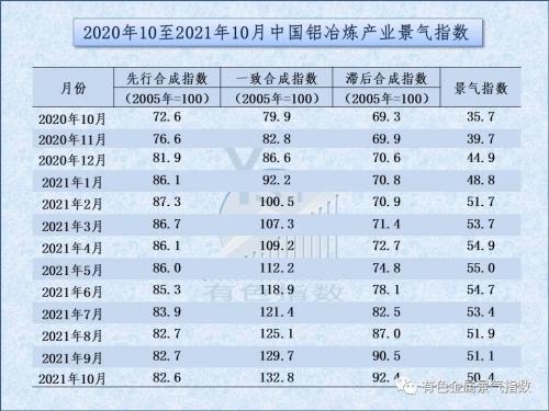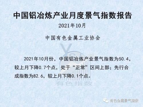 中国铝冶炼产业月度景气指数报告(2021年10月)