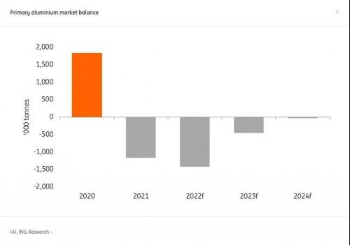 原铝产量增长放缓和消费强劲表明,铝市场在2022年将出现更大的赤字。这种赤字,加上库存的稳步下降,意味着价格应该会更高。