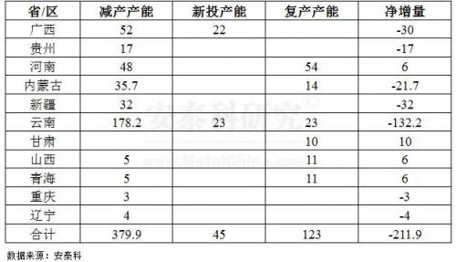 表4 2021年中国电解铝产能变动情况(万吨/年)