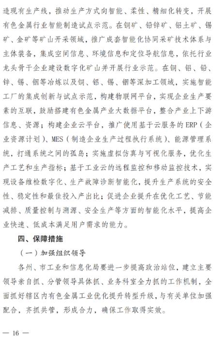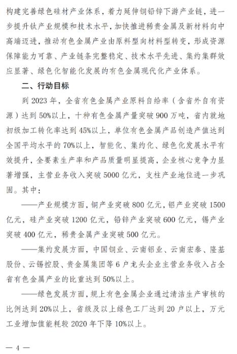 为贯彻落实省委十届十一次全会、省委经济工作会议精神和《云南省国民经济和社会发展第十四个五年规划和二〇三五年远景目标纲要》有关部署,按照省委深改委《关于印发<省委深化改革委员会2021年工作台账>的通知》(云改委发〔2021〕2号)要求,省工业和信息化厅研究起草了《云南省全链条重塑有色金属及新材料产业新优势行动计划(征求意见稿)》(以下简称《行动计划》),在认真研究并充分征求各州(市)人民政府、省级有关部门、相关企业及厅内有关处室意见的基础上,对文稿进行了修改,并经省工业和信息化厅党组2021年第31次(扩大)会议审议通过。现将《行动计划》印发你们,请结合实际抓好贯彻落实。