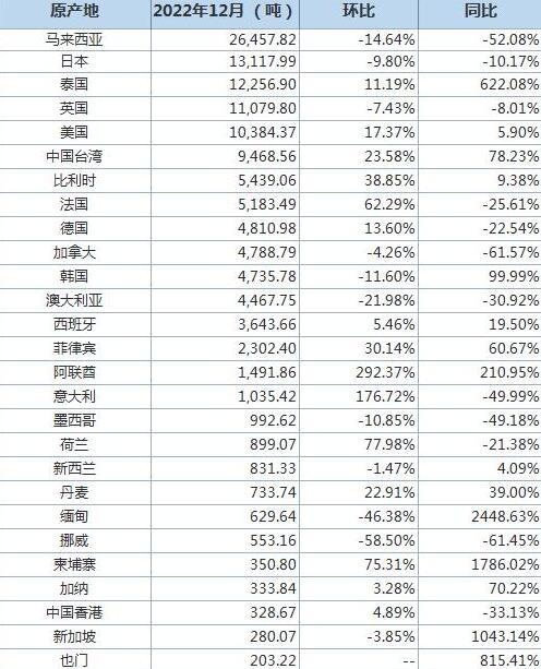 以下根据中国海关总署官网数据整理的2022年12月废铝进口分项数据一览表: