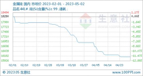 5月2日,生意社金属硅基准价为16140.00元/吨,与本月初持平。