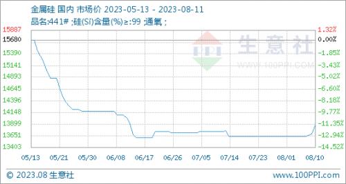 8月11日,生意社金属硅基准价为13880.00元/吨,与本月初(13630.00元/吨)相比,上涨了1.83%。