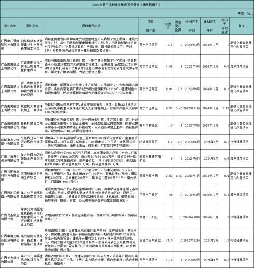 为贯彻落实《广西推进产业振兴三年行动指挥部关于印发2023年全区制造业项目建设年活动实施方案的通知》(桂产业振兴指挥部综合〔2023〕8号)精神,大力开展制造业项目建设年活动,推进补链强基、高端化智能化绿色化改造、增产增效等制造业重点项目建设,促进工业投资扩量提质,提升产业链竞争力控制力,推动工业高质量发展,现将2023年第三批制造业重点项目印发给你们,请认真组织实施。