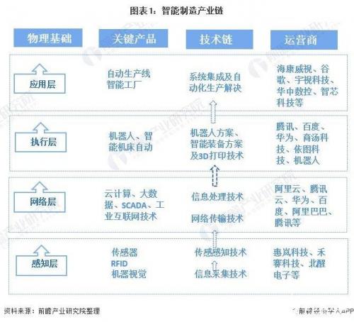 智能制造产业链涵盖感知层、网络层、执行层和应用层四个层次,其中感知层主要包括