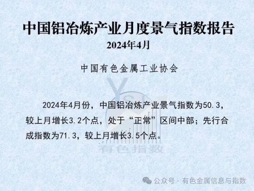中国铝冶炼产业月度景气指数报告(2024年4月)