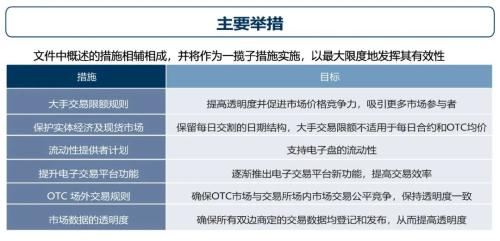 为了确保交易所交易市场和场外OTC交易市场之间的公平竞争环境和一致的透明度,LME考虑对参考LME价格并与月度交易所合约(或这些合约之间的价差)密切相关的场外交易合约实施类似的大手交易规则要求,降低交易远离中央流动性池的风险。