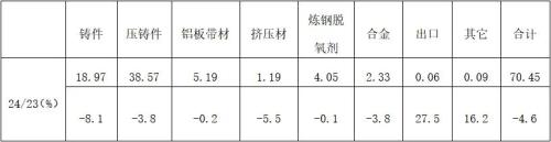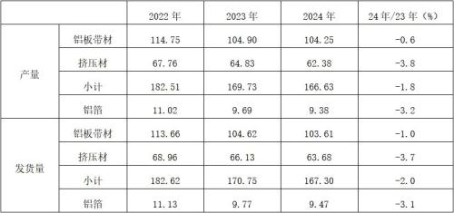 表1 2024年日本铝压延产品和铝箔产量、发货量统计单位:万吨