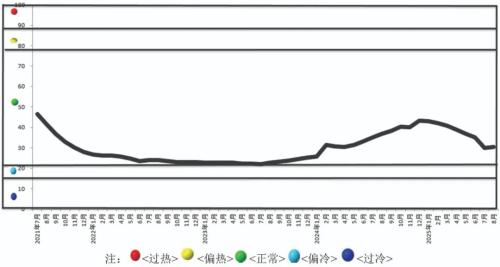 8月份,中国有色金属产业景气指数为30.3,较上月上升0.4个百分点,从总体来看,8月景气指数呈现上升趋势,仍处在“正常”区间中部。