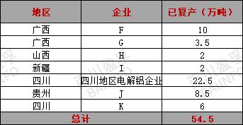 截至目前,2025年中国电解铝企业已复产54.5万吨。