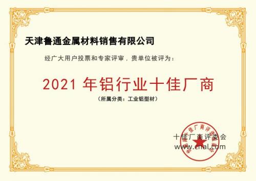 据悉,铝行业十佳厂商评选活动已经连续举办十五届,每年吸引数万人次参与,所遴选出的“十佳企业”已成为铝行业衡量企业实力水平的重要依据。天津鲁通金属材料销售有限公司首次入选榜单,荣获客户和专家组的认可,荣耀既是实力获得肯定标志,同时也激励企业更进一步提升产品、服务质量,积极践行国家铝工业发展路线。