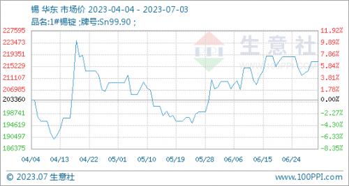7月3日,生意社锡基准价为216910.00元/吨,与本月初持平。