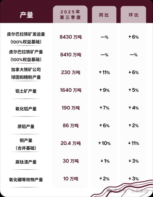 “我们正稳步实现2025年产量指导目标,并在本季度对铝土矿产量指导目标进行了上调,具备实现强劲中期产量增长的坚实基础。当前,我们将继续通过卓越运营、简化流程,以及在绩效和资本投资方面的严格管理,为股东创造更多价值。”