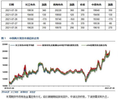 本周期货市场有色金属走势分化,铝价跟随期铝探低回升,中游出货积极,下游按需采购为主。