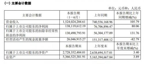 8月24日,好莱客公布了今年上半年公司的经营业绩报告。报告显示,好莱客上半年营业收入与利润双增长,实现营业收入15.24亿元,同比增长105.79%;实现归属于母公司净利润1.38亿元,同比增长80.06%。