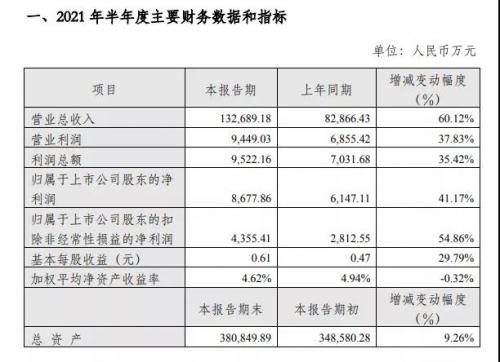 早在7月31日,金牌厨柜的2021半年度业绩快报便已披露。据悉,今年上半年实现营业收入13.27亿元,同比增长60.12%;净利润8677.86万元,同比增长41.17%。