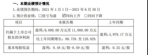 7月15日,皮阿诺发布了2021年半年度业绩预告。据预告显示,归属于上市公司股东的净利润或盈利9,000.00万元至11,000.00万元,比上年同期增长80.75%至120.92%。