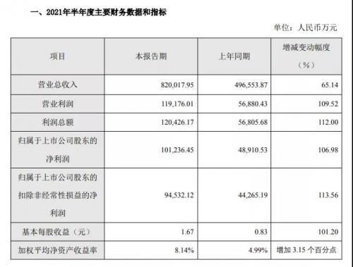 8月11日,欧派家居发布半年度业绩快报。报告期内,实现营业总收入82亿元,同比增长65.14%;实现归属于上市公司股东的净利润10.12亿元,同比增长106.98%。其中,2021年单二季度实现营业收入49亿元,同比增长38.61%,实现归属于上市公司股东的净利润7.69亿元,同比增长30.15%。