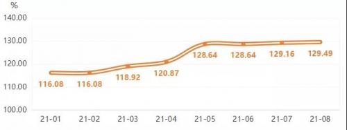 8月,家居成品价格指数收报129.49点,环比微涨0.25%。家居成品价格指数走势见下图: