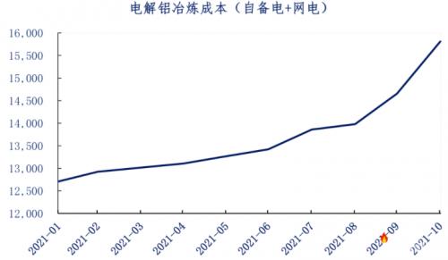“双碳”政策背景下,各省市发改委相继出台政策抑制电解铝的产能投放,云南等地的电价优势也不复存在,电解铝的生产成本被抬高。