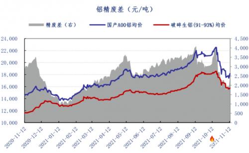 在电解铝4550万吨的产能天花板下,废铝供应紧张在一定程度上支撑着铝价未来走势。铝价高于往年且波动增大,是下游需求低迷的主要原因之一。
