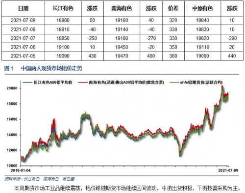 本周期货市场工业品继续震荡,铝价跟随期货市场继续区间波动,中游出货积极,下游按需采购为主。