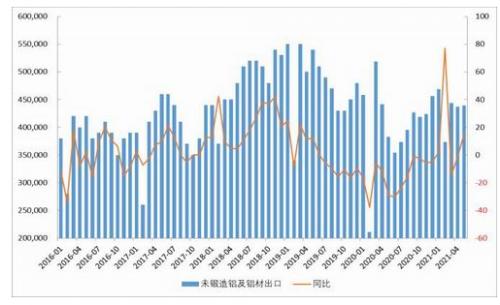 从出口的角度来看,4/5月未锻轧铝及铝材出口43.7/43.9万吨,同比增长-0.88%/14.67%。二季度的出口数据并未延续一季度同比回升的趋势,并且环比增速也出现了负增长。其中同比负增长主要与去年疫情环境下的高基数有关,由于去年二季度国内疫情已经平稳,而海外市场正处在疫情爆发初期,在出口订单集中转移至国内的情况下,去年出口市场的高景气度使得今年出口同比放缓。环比负增长是受二季度变异病毒影响,在印度Delta变异病毒快速传播的情况下,部分国家再度收紧了防疫政策。同时人民币季度内的大幅走强,以及国内铝价的持续走高均使得出口利润出现压缩。不过随着海外疫苗接种范围的继续扩大,我们预计后续铝材出口将得到一定程度修复。