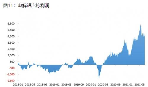 截止6月25日,按当日价格计算,电解铝企业冶炼即时平均完全成本约为13915元/吨左右,较上季度上涨约549元/吨。随着二季度国内气象条件的持续好转,各地气温的集体回升使得电力需求出现季节性上涨,特别是华南地区持续的高温少雨使得地区电力需求大增。同时受北方矿山事故频发影响,在安全生产的严格要求下,叠加地缘经贸关系的持续紧张,国内煤炭供应持续偏紧,进而使得火电成本大幅抬升。而西南地区旱情更进一步加重了国内电力供应的紧张状态。不过由于电力系统并未完全市场化运行,因此短期电力价格变化并不显著。从辅料端的情况来看,国内阳极均价已上行至4634元/吨,较上季度上涨约655元/吨;氟化铝价格则回落至7500元/吨,较上季度下降约1225元/吨。此外氧化铝价格的持续回升,也令二季度炼厂成本曲线出现上移。不过在季内绝对铝价创出10年高点的情况下,铝冶炼企业的利润水平也同步上行并创出历史新高。不过随着国内监管层的出手干预以及货币流动性的边际收紧,绝对铝价已经出现了快速调整,后续再度创出新高的概率已经不大,因此铝厂利润也迎来拐点。