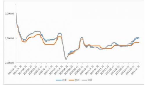二季度氧化铝价格受到电解铝刚性需求释放和生产成本抬升的双重支撑,价格延续上行走势。截止6月25日,河南、贵阳、山西三地氧化铝价格分别为2505、2415、2518元/吨,均价较上季度上涨约135元/吨。从绝对静态平衡来讲,二季度氧化铝价格理论上应承受一定的过剩压力,在全行业开工水平稳步提高,产量继续保持正增长的情况下,伴随交口信发、孝义信发的复产达产,供应继续增长的预期仍在增强。但受绝对铝价持续高企影响,电解铝企业因生产利润较厚而对原料价格钝化。在冶炼需求更加刚性的情况下,伴随提前锁定利润动作的增多,使得成交价格节节攀升。同时在液碱铝土矿等原料成本出现上行的情况下,氧化铝在售价格也相对坚挺。不过考虑到电解铝价格已从前期高点处回落,并且在淡季及监管政策的影响下,电解铝产能的扩张速度或逐渐慢于氧化铝供应,因此我们认为后续氧化铝价格的上行幅度将再度趋缓。