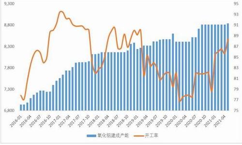 从进出口角度来看,海关数据显示,5月氧化铝出口量为0.47万吨,环比4月下降45.8%,与2020年同期相比下降83.7%;5月氧化铝进口量为14.5万吨,环比4月下降38.23%,较2020年同期下降45.9%。5月氧化铝净进口量为14.1万吨,净进口数量较上月下降37.9%。二季度氧化铝市场整体运行平稳,在全行业开工水平稳步提高,产量继续保持正增长的情况下,伴随交口信发、孝义信发的复产达产,季内供应端的产量增速较上一季度明显加快。但受绝对铝价持续高企影响,电解铝企业因生产利润较厚而对原料价格钝化。在刚性需求持续释放的情况下,伴随提前锁定利润动作的增多,使得成交价格节节攀升。虽然海外氧化铝价格此时并未跟随上行,但在海运费用持续走高的情况下,进口原料的经济性依然不如国产氧化铝。因此在外料企业主动减少进口占比的情况下,季内进口量较上季度明显回落。并且在国内氧化铝产量继续高速增长的情况下,我们预计后续进口量也将维持回落趋势。