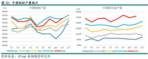 铝材、铝制品出口方面,在海外消费维持稳步增长的背景下,铝材、铝制品出口仍有较强韧性。不过海外供应增加,相应对国内产品需求或有所下降,预计2026年出口较2025年仍有小幅下降。