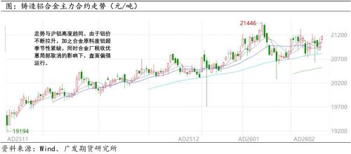 铸造铝合金期货自2025年6月在上市以来,整体走势与沪铝主力合约高度趋同。上市首日,期货价格便因挂牌基准价显著低于当时现货价格而大幅高开,随后整体价格重心在19000元/吨上方持续震荡偏强运行。支撑其盘面保持强势的核心驱动力来自两方面:一是成本端,上游原料废铝因国内外回收体系制约及海外政策影响,供应持续呈现偏紧格局,价格维持高位,对铝合金价格构成了刚性的成本支撑;二是政策端,部分地方对企业税收返还优惠的清理,直接增加了再生铝生产企业的运营成本,并影响其生产计划,进一步从供应和成本两端对期货价格形成提振。特别是在年中冰岛铝厂意外停产等事件推动国际铝价上涨时,铸造铝合金期货价格也随之走高。