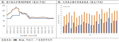25年进口矿价高位回落,据测算60-65美金/干吨或为静态强支撑。2025年供需格局的转变直接反映在价格上,随着供应放量,几内亚铝土矿CIF价格从年初114美元/干吨的高点一路下行,至2025年12月10日触及70.5美元/干吨,全年两度接近70美元/干吨的关键点位。据阿拉丁测算,假定海运费不变的情况下,若几内亚进口矿价下探至65美元/干吨时,预计约3000万吨产能面临现金成本压力;若跌至60美元/干吨,亏损产能将扩大至约6700万吨,或触发规模性减产,从而从成本端构筑了价格下限。因此,尽管全年铝土矿理论供应过剩,但价格在接近70美元/吨时开始获得较为明显的支撑。铝土矿定价逻辑正在发生转变,长期成本中枢上移可能成为不可逆的趋势。虽然短期铝土矿面临着较为明显的过剩,价格似乎不得不向生产成本回归。但长期来看,铝土矿正在逐步被嵌入几内亚的国家发展战略和地缘政治博弈的叙事里,这导致其成本构成和定价逻辑或发生改变。具体来看,传统矿业成本主要包括采矿、运输、加工和税费。然而,在资源保护的浪潮下,一系列如本土化溢价、ESG合规成本、战略资源税等非传统成本正在或即将被强制纳入。7月出台的几内亚铝土矿价格指数(GBX)条款是典型案例,该条款实质上赋予了几内亚政府在矿石销售和物流环节更大的控制权和收益权。若全面执行,矿山企业的销售自主权将受限,物流成本将按照政府定价执行,直接推高了离岸成本和到岸成本。经测算,仅此一项就可能使几内亚矿石的中长期到岸成本增加10~15美元/干吨。几内亚未来可能出现的模式是:政府通过其控股的铁路港口公司设定一个基础运输和销售服务价格,矿山企业在此基础上与买家谈判。这使得铝土矿的定价机制变得更加复杂和不透明,长期成本中枢上移可能成为不可逆的趋势。