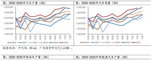 汽车:2025年,国内汽车市场在稳增长政策与消费需求释放的共振下,表现超出年初预期,成为铝消费增长的核心引擎之一。根据工业和信息化部等八部门印发的《汽车行业稳增长工作方案(2025—2026年)》,2025年力争实现汽车销量约3230万辆,其中新能源汽车1550万辆,同比增长约20%。实际运行数据显示,1-11月汽车产销同比分别增长11.9%和11.4%,强劲的产销直接拉动了铝材消耗。2026年汽车用铝增长依然可期但增速或温和回落。政策层面,新能源汽车购置税优惠将从2025年的全额免征调整为减半征收,每辆新能源乘用车减税额不超过1.5万元,这一变化可能对部分消费需求产生前置或温和影响。我们预计2026年中国新能源汽车销量约1875万辆,同比增长约12%,增速较2025年有所放缓。尽管如此,两大结构性动力依然坚实:其一,新能源汽车渗透率预计将继续提升,其更高的单车用铝属性将结构性拉高行业均值;其二,在双碳目标和技术迭代压力下,轻量化进程不会逆转,铝在车身一体化压铸、电池包等领域的应用广度和深度将继续加强。综合判断,我们给定燃油车、新能源汽车明年增速分别为-7%/10%,预计全年汽车用铝增量仍可贡献40万吨。