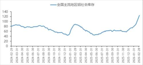 库存方面,自2月以来,国内铝锭社会库存呈现累库趋势,这主要受到了供给释放、需求滞后与物流梗阻等三重因素的影响。从供给端看,2月正值春节假期,下游加工企业集中放假导致铝液就地转化受阻,铝水比例环比大幅下降7.69个百分点至64.37%,更多铝液被铸造成铝锭入库,据测算当月铸锭量环比增量约17万吨,直接推升了社会库存;从需求端看,春节后下游复工复产进度不及预期,尤其是以建筑型材为主的华南地区企业复工普遍推迟至3月上旬,铝锭消化速度缓慢,下游采购以刚需为主、观望情绪浓厚;从物流端看,春节期间货物集中到库,而节后物流运力恢复和人手返岗存在滞后,导致主流消费地仓库库容全线告急,大量铝锭积压在铁路站台。据SMM调研,仅无锡、巩义、佛山三地站台积压量合计已超11万吨,这部分潜在供应虽未完全进入统计库存,但进一步加剧了市场对供应压力的预期。截至3月5日,国内电解铝社会库存已攀升至125.6万吨,较节前累计增加36.4万吨,累库态势明确。