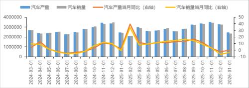 2026年开局,中国汽车市场在政策换挡与需求透支的双重压力下艰难前行。1月汽车产销分别完成245万辆和234.6万辆,产量同比微增0.01%,销量同比下滑3.2%;环比则分别大幅下滑25.67%和28.31%,呈现环比深度回调、同比勉强企稳的运行特征。