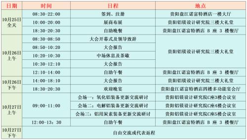 贵阳铝镁设计研究院三楼大礼堂(注:酒店与会场有摆渡车往返,报到后领取摆渡车发车时间表);